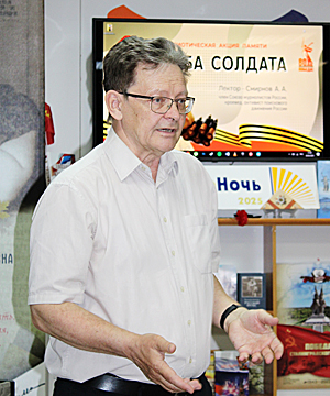 В ходе встречи «Судьба солдата», член Союза журналистов РФ, краевед, Александр Александрович Смирнов, рассказал о своей трудной, интересной работе и дал информацию о самостоятельном поиске родных и близких.
