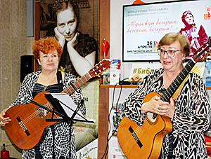 В концертной программе солистов проекта «Синий троллейбус», лауреатов региональных и международных конкурсов и фестивалей авторской песни Натальи Андреевой и Людмилы Салеевой прозвучали широко известные и любимые военные песни, их подпевал весь зал!